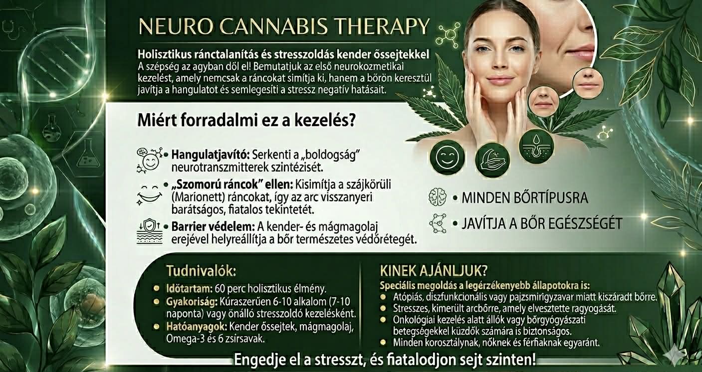 A Neuro Cannabis Therapy a világ első olyan neurokozmetikai kezelése, amely a Kannabia Sense™ technológiával közvetlenül az agy és a bőr közötti kommunikációs rendszert célozza meg.